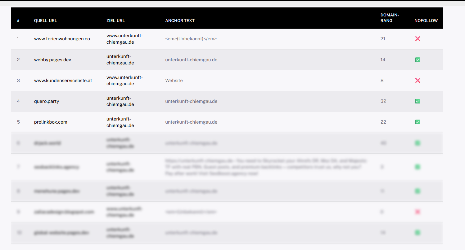 Ja. Du siehst nicht nur Risiken, sondern auch wertvolle, relevante Linkquellen – ein guter Ausgangspunkt für Partnerschaften und Content-Kooperationen.